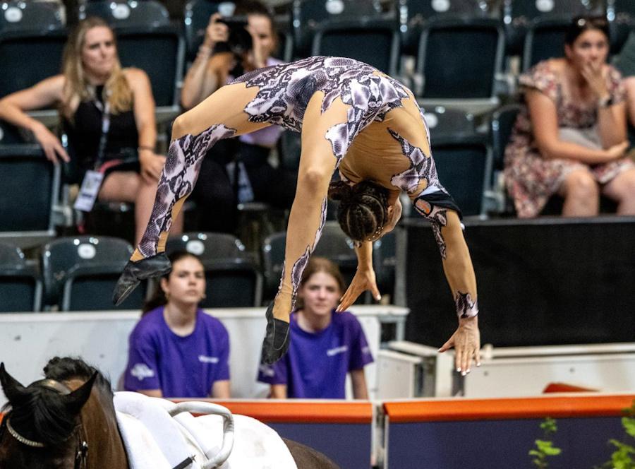 Eva Nagiller (AUT) and Bastion at the FEI Vaulting World Championship for Seniors in Bern (SUI) 2024 © FEI / Martin Dokoupil