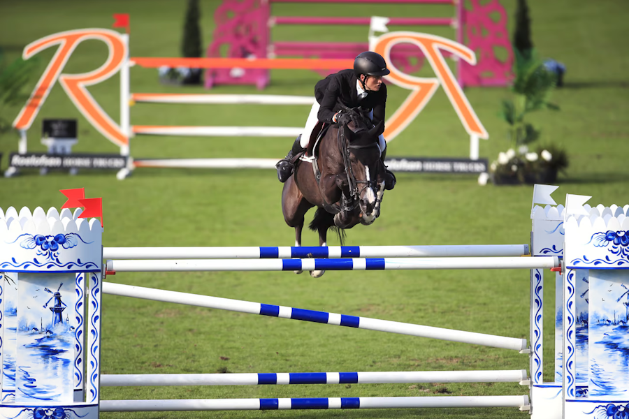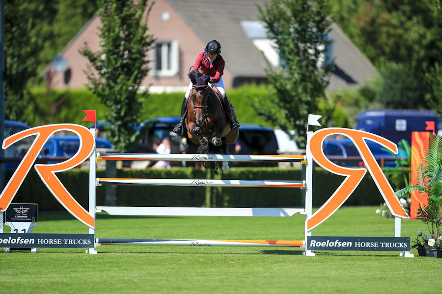 Dutch rider Vronie van de Rijt stormed to victory in the CSI2* Against the Clock with Immediate Jump Off 1.20m class where riders rode their jump-off straight after a clear round. With a smooth round with her 11-year-old gelding Neil Diamo d'Art (Zang, Andiamo Z x Narcos II), she stopped the clock at 29.42 seconds. The 29-year-old rider from Gerwen in Brabant has been competing in Valkenswaard since 2021 and was delighted with the result: "I am very happy with this victory. He is very fast and he is a great jumper. He always goes full steam towards the finish line." Second place went to Spain's Pilar Lucrecia Cordon who posted a time of 31.32 seconds with Machiavelli B (Untouchable x Clarimo). Dutch Thalessa de Jong came home third with L'Extreme BH (Canturo x Calvaro) with a time of 35.01 seconds.