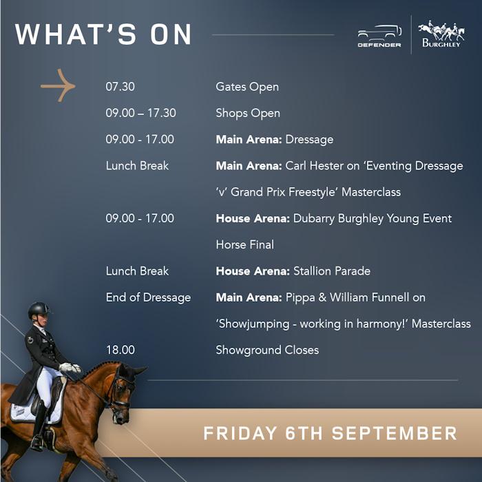 Head to the House Arena from 9am to catch the Dubarry Burghley Young Event Horse Final.