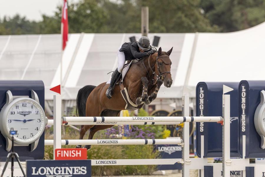 She led from early on with her first ride, Iron Dames Earl Of Alice (Eldorado vd Zeshoek x Cinsey, BRAND). Returning later on the Westphalian mare Sascinora NRW (Stakkato-Boy RM x Firth of Lorne), Eckermann was intent on adding another win to her collection. An incredibly fast and clear round on the mare - bred by Otmar Eckermann - saw her take the lead and remain in contention for both gold and silver with only three riders left to go.
